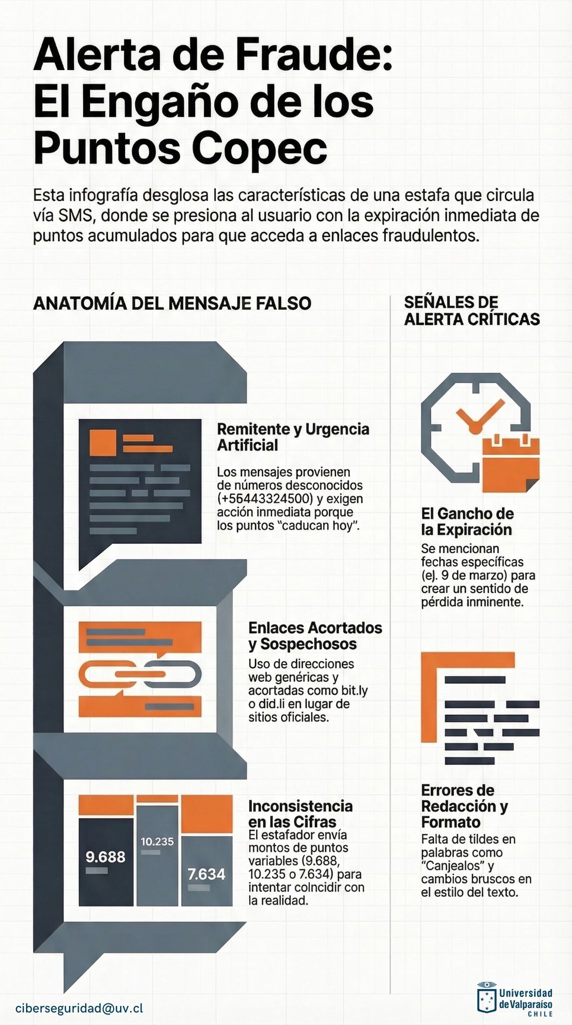 Para proteger su información personal e institucional, hemos preparado la siguiente infografía como guía principal. Les agradecemos revisarla con atención para aprender a identificar rápidamente estos mensajes fraudulentos:
